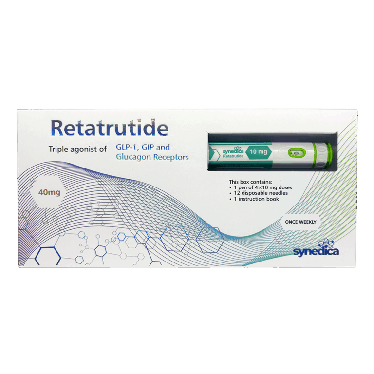 The Synedica Retatrutide 40mg Injection Pen Kit delivers one of the most advanced medical weight-loss solutions available today. Retatrutide helps reduce appetite and supports significant weight loss by mimicking the effects of GLP-1, GIP, and other natural hormones that signal fullness. As a result, users feel satisfied after eating much smaller portions. One injection pen kit typically supports new users for up to 12 weeks.